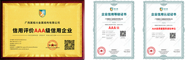 廣西冀桂川金屬結構有限公司始終恪守“誠實經營、質量保障、信譽至上、價格合理、合作共贏”的宗旨,嚴格按照ISO質量體系認證標準,為客戶提供系統的技術支持和施工建議,有效的為客戶解決難題,竭誠為客戶提供更優質滿意的工程。